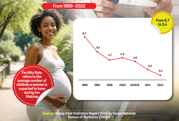 Kenya’s fertility rate has seen a remarkable decline, falling from 6.7 children per woman in 1989 to just 3.4 in 2022, according to recent data.