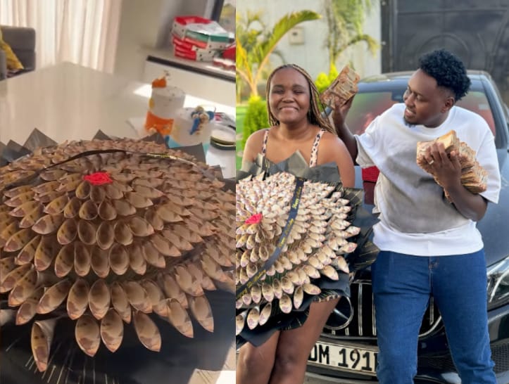 Nyathira, the sharp-eyed entrepreneur behind her eponymous trading empire, unveiled the gesture in a sunlit Instagram Reel, her beaming face framed by stacks of crisp KSh notes artfully arranged like a floral explosion – a million-shilling bouquet that screams “happy returns” louder than any diamond dazzle.