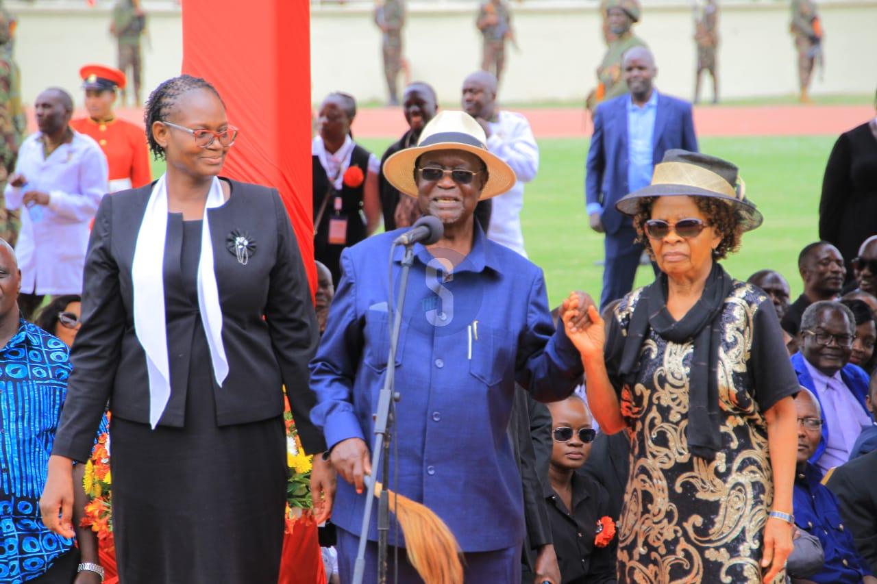 Flanked by family and dignitaries, including President William Ruto, he began with sombre reflections on brotherhood and legacy before pivoting to family. “This is my first wife, Ann, and this is her helper, Judith,” he added, gesturing to the women who stood beaming beside him.