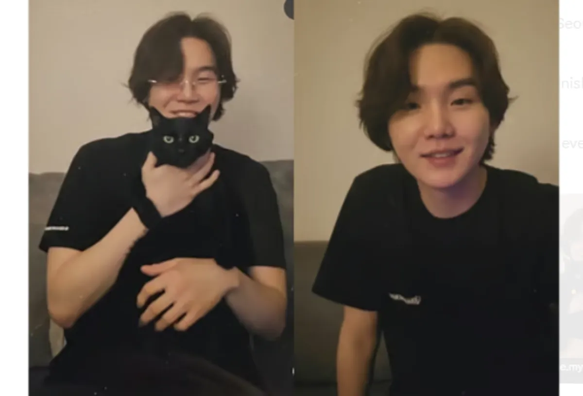Suga appeared relaxed in a black outfit and glasses. His hair looked longer and a bit wavy. He chatted calmly for about 20 minutes. At one point, fans heard meows in the background. Suga smiled, called the cat over, and introduced him to everyone.