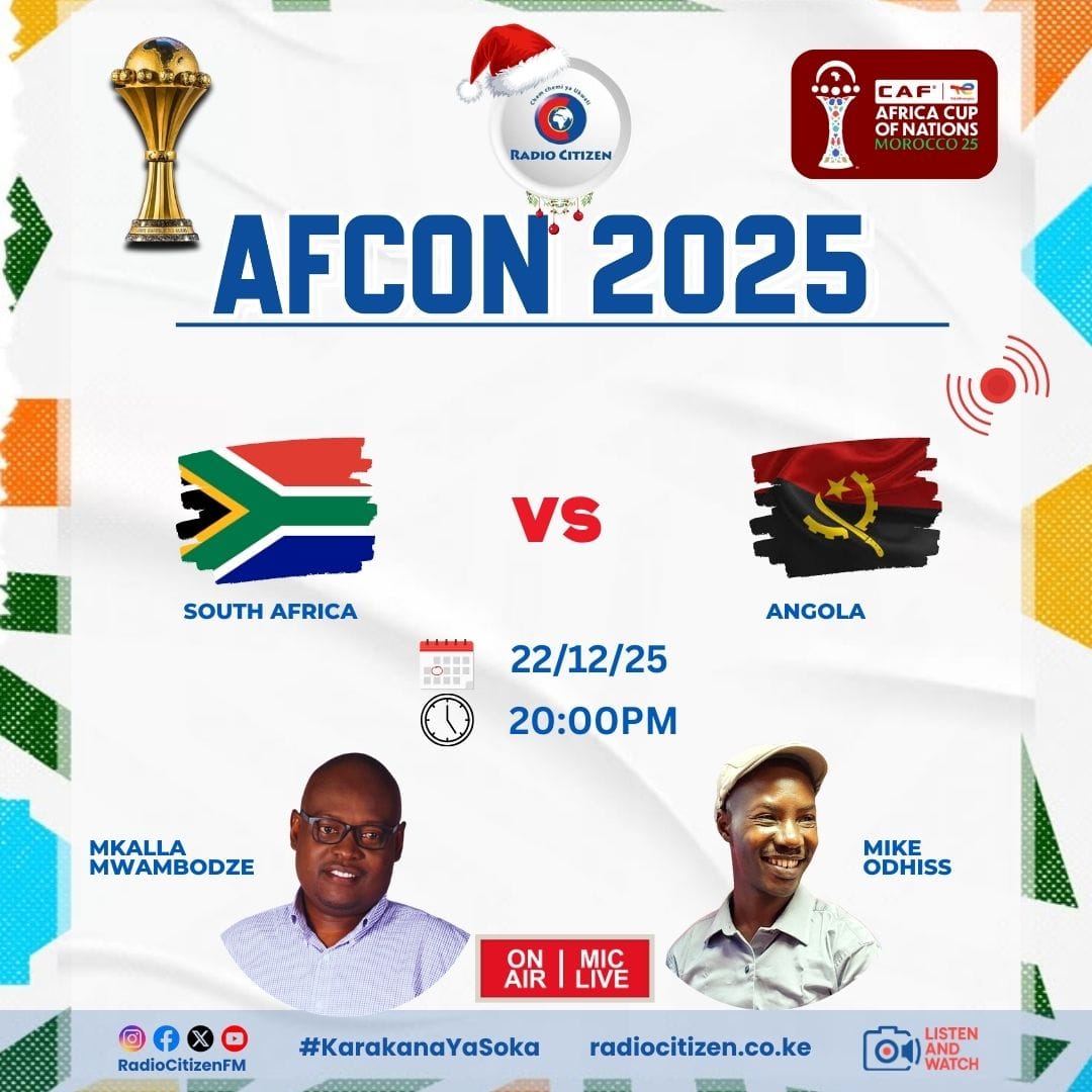 Football fans in Kenya can follow the Africa Cup of Nations 2025 through live radio commentary on Radio Citizen. The station is broadcasting key matches via their popular sports show, Karakana ya Soka, hosted by Mkalla Mwambodze. He provides updates and analysis straight from the venues in Morocco.