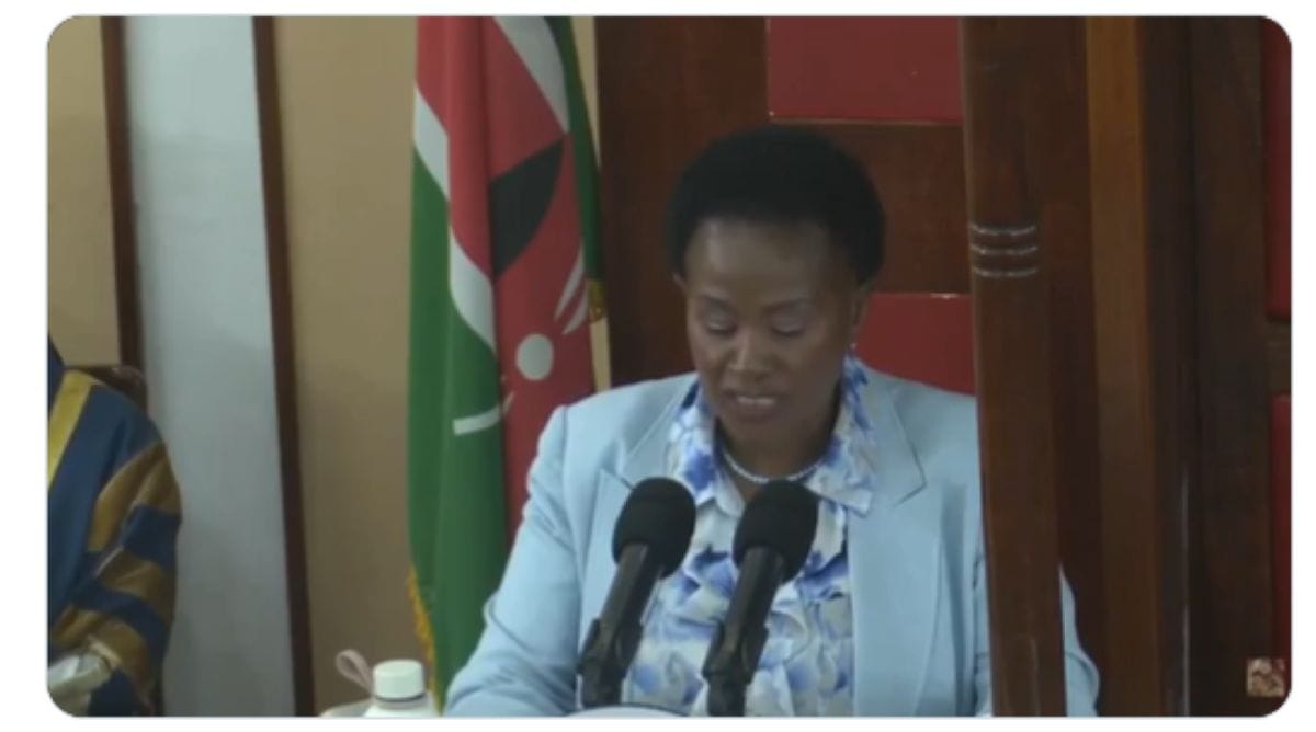 The moment unfolded live as she stood at the podium inside the Machakos County Assembly chambers. Video clips spreading fast online show her pausing repeatedly, stumbling over words, and looking visibly uncomfortable with the prepared text. At one point she tried to push on, but the words just wouldn’t come smoothly.