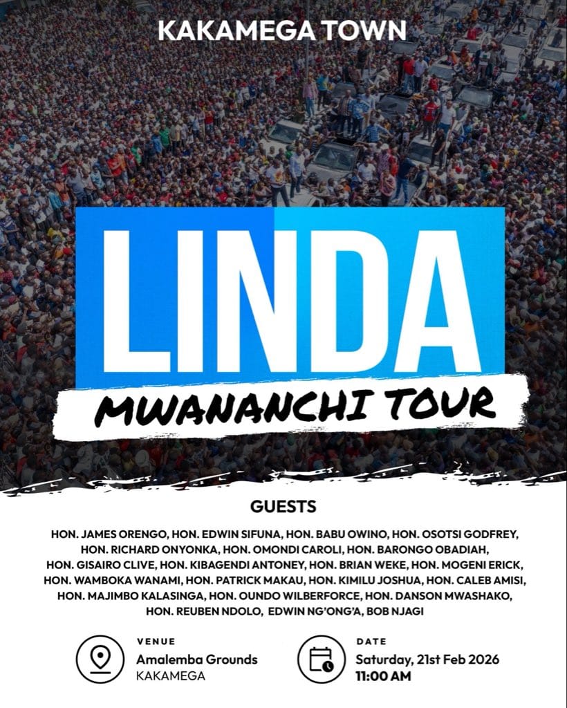 Edwin Sifuna has confirmed the upcoming Kakamega rally, set to shake up Kenya’s political scene as divisions in the Orange Democratic Movement (ODM) grow deeper. The event, part of the Linda Mwananchi Tour, kicks off at 11 a.m. on February 21 at Amalemba Grounds in Kakamega town.
