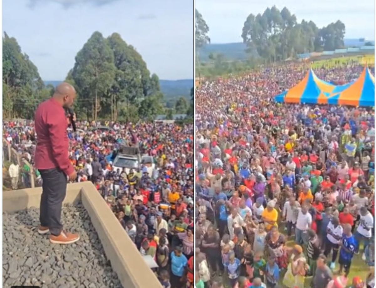 He told the crowd that handouts have become the new standard for politics, and anyone who cannot meet that minimum should stay away. The message was blunt. If you cannot afford to give five hundred shillings and above to the people, then do not bother showing up because you will not be allowed on the ground.